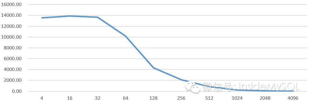 可以发现,将innodb_thread_concurrency设置为16,性能的确会有一定的提升。并发线程数在128的时候,TPS从原有的4300提升为了7200,将近有65%的性能提升。但是在256线程之后,性能依旧堪忧。