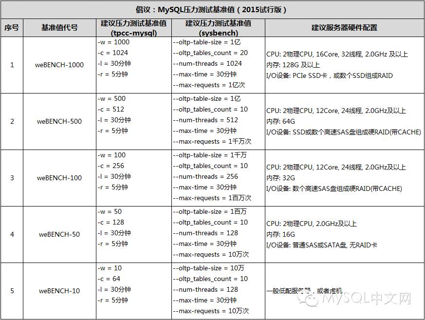 - 倡议:MySQL压力测试建议基准值(2015试行版)