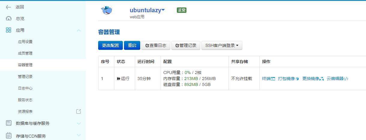 进入应用管理面板,选择左侧“容器管理”,进入应用的容器管理,看到操作中有“终端”,进入终端即可。如图: