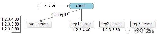 - client每次访问tcp-server前,先调用一个新增的get-tcp-ip接口,对于client而言,这个http接口只返回一个tcp-server的IP